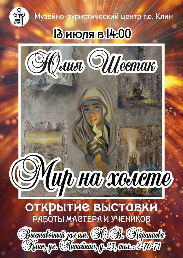 В Выставочном зале имени Ю.В. Карапаева 13 июля стартовала выставка «Мир на холсте», на которой представлены работы члена Клинского отделения Союза художников Подмосковья Юлии Шестак.