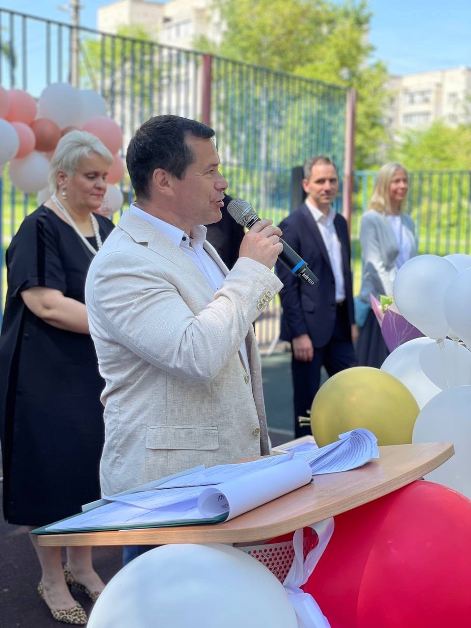 Депутат Мособлдумы от фракции " СПРАВЕДЛИВАЯ РОССИЯ – ЗА ПРАВДУ " Анатолий Никитин посетил торжественную линейку своего сына-выпускника Никиты.
