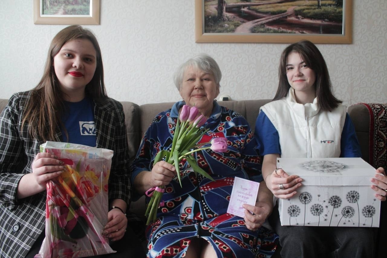 Ребята поздравили пенсионерок с Международным женским днем, вручили им цветы и провели в квартирах уборку.
