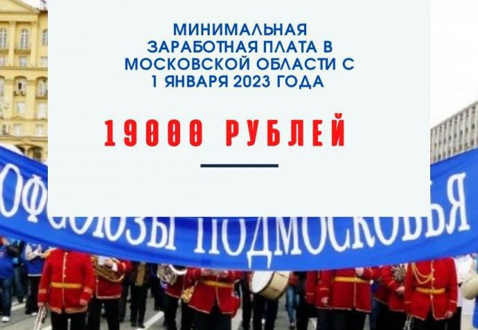 Стороны договорились установить на территории Московской области минимальную заработную плату с 1 января 2023 года в размере 19 000 рублей.