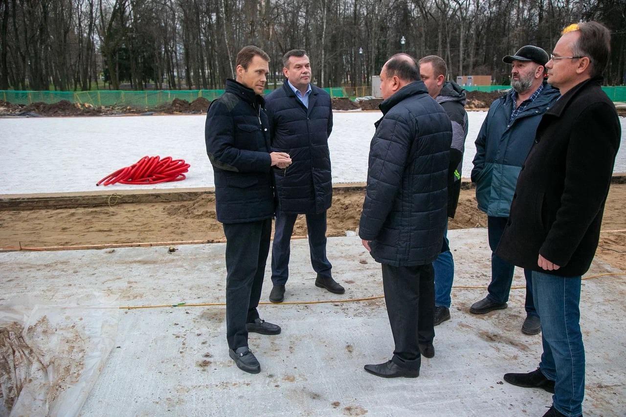Депутат и глава округа проверили ход работ по строительству ледовой коробки.