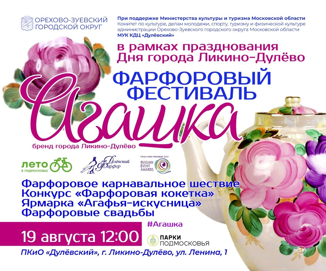 Стала известна дата фарфорового фестиваля «Агашка». Праздник состоится 19 августа в городе Ликино-Дулёво.