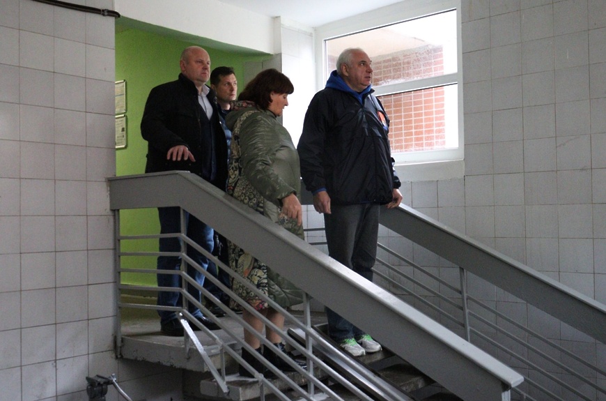 Он посетил четвертый подъезд дома 15Б по улице Лесной. Здесь ремонтные работы выполняет управляющая компания «Старкомсервис» .
