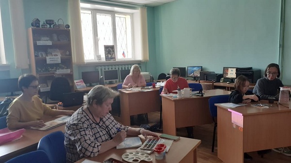 На очередном занятии в изостудии «Чердак» Рузской городской библиотеки рисовали горный пейзаж.