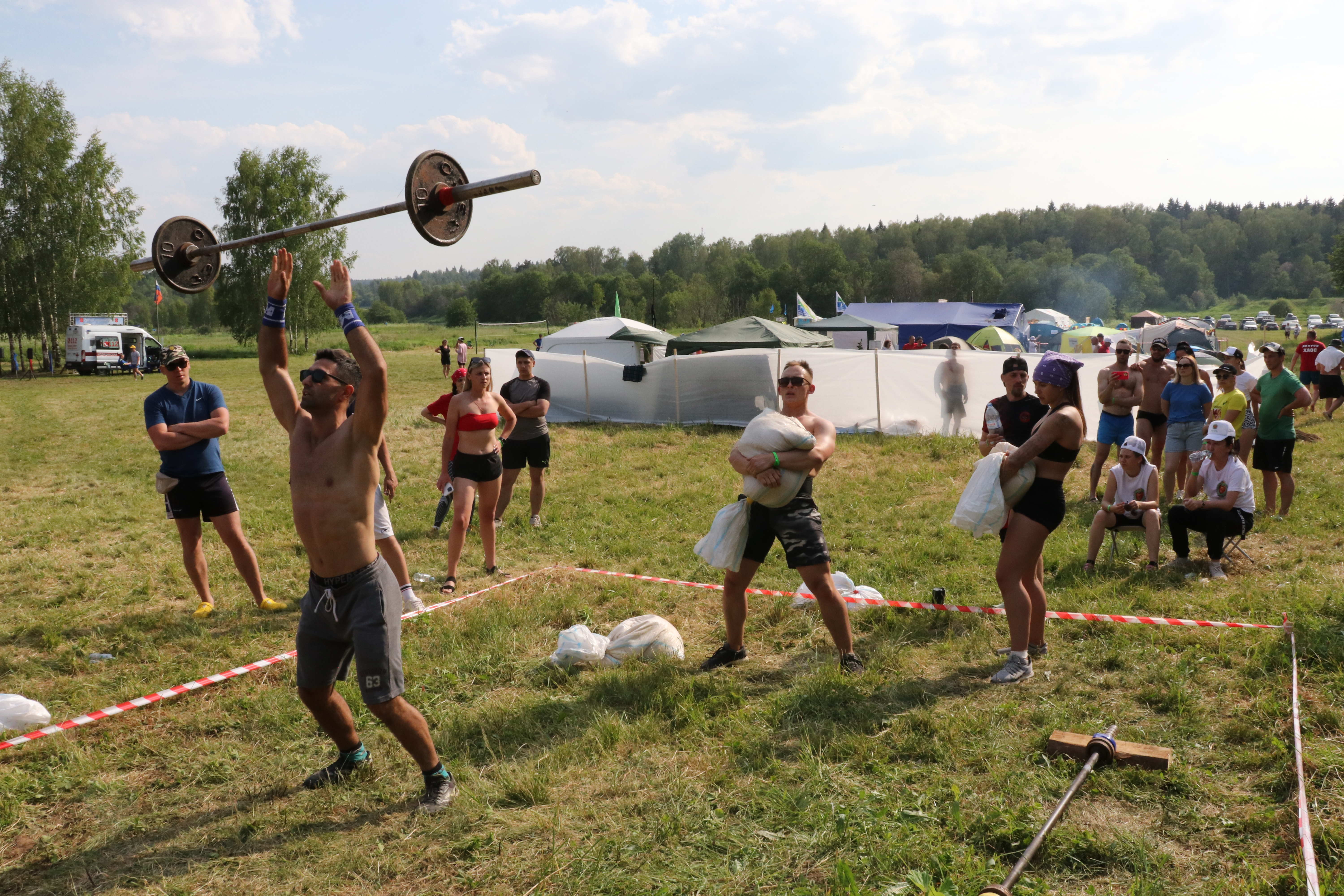 В соревнованиях по кроссфиту участвовали самые сильные представители команд – как мужчины, так и девушки. Им требовалось поднять штангу максимальное количество раз и пройти тяжелое испытание – подняться в горку с набитыми мешками. Спускаться обратно, конечно, было легче, но важно не оступиться под тяжестью ноши.
