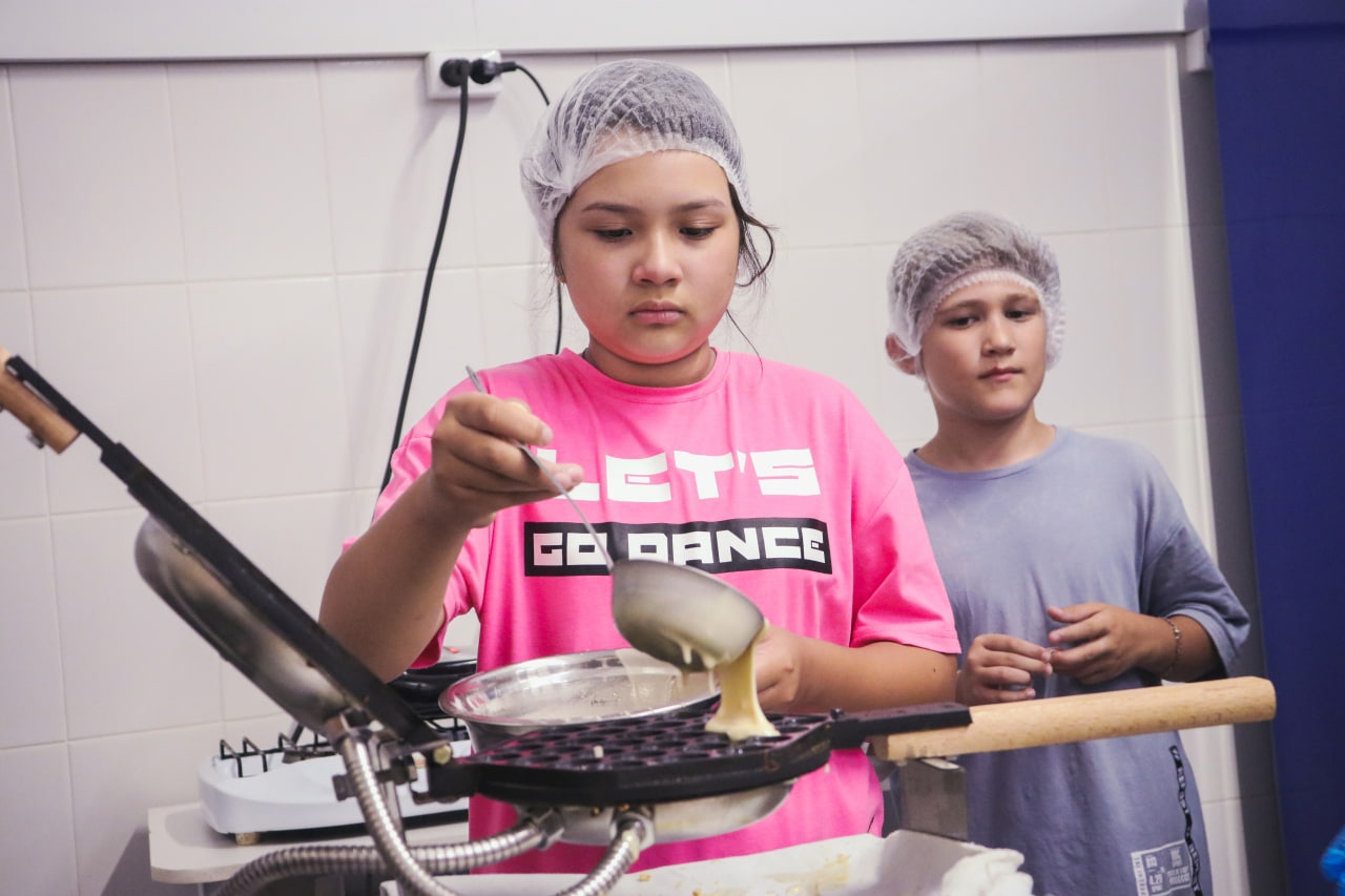 Мастер-класс же включал в себя беседы по технике безопасности, использованию оборудования для приготовления десерта, а также само изготовление мороженого. Дети делали его с нуля: замешивали всю смесь, нарезали фрукты и пекли вафли.