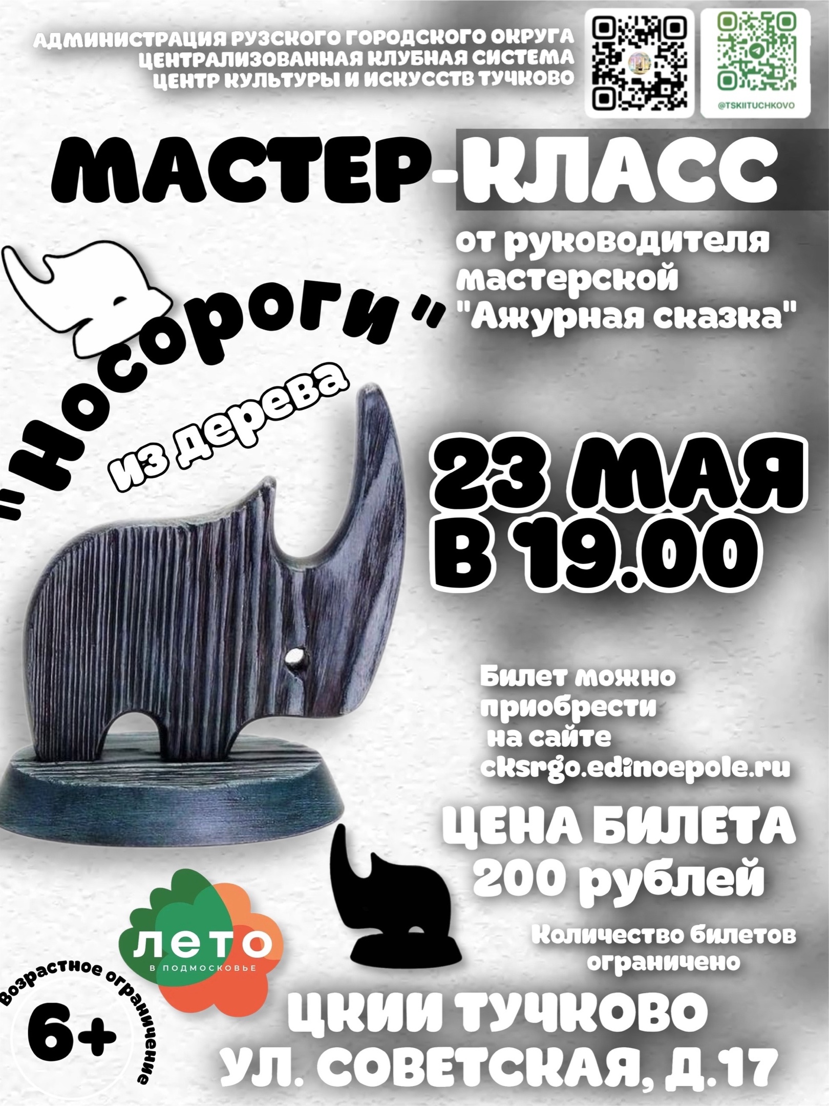 23 мая в Тучковском центре культуры и искусств Рузского городского округа состоится мастер-класс по декоративно-прикладному искусству «Носороги».