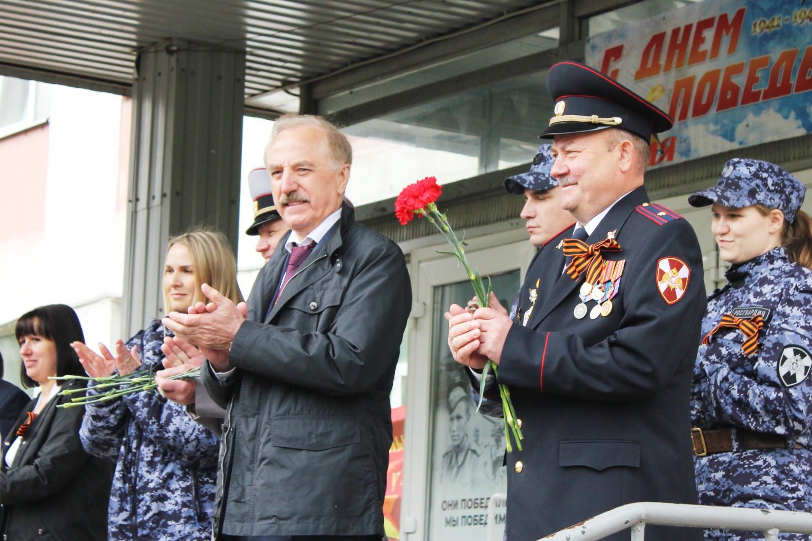 На построении дети держали в руках портреты героев своих семей – ветеранов Великой Отечественной войны.