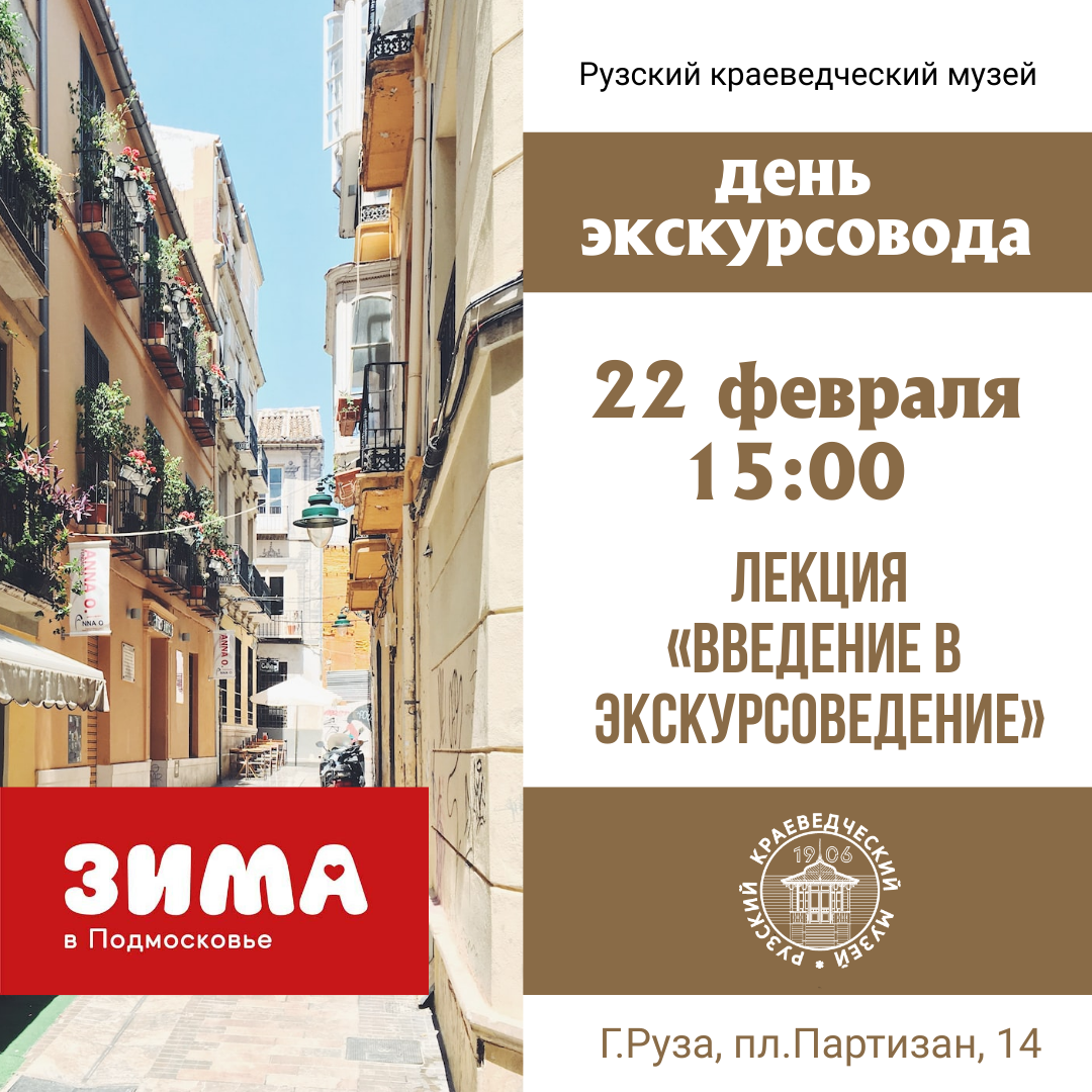 22 февраля в 15.00 в Рузском краеведческом музее пройдет лекция «Введение в экскурсоведение», приуроченная к Всемирному дню экскурсовода.